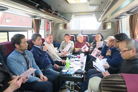 まずは車内での総会の開催。2018年度事業報告、収支報告、2019年度事業計画(案)等が審議され全会一致で承認の運びとなりました。